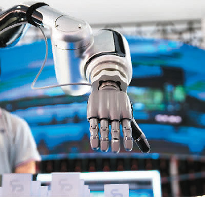 在论坛展览(科博会)现场还有不少高科技产品——记录运动员膳食营养摄入情况的智慧餐台、石墨烯智能发热围巾、适用于全膝关节置换手术的机器人等科技产品,让参展观众大开眼界。