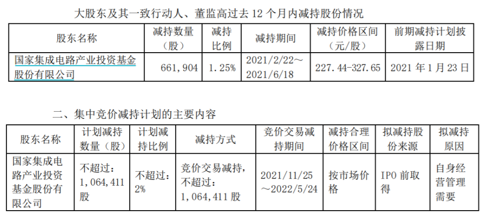 大基金频频减持半导体公司