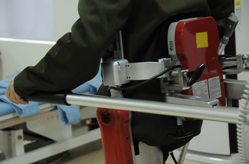 12月3日国际残疾人日前夕,记者在四川省革命伤残军人休养院看到,4名伤残老兵在使用该装置进行训练,借助截瘫助行外骨骼机器人,残障人士可以起坐、行走、上下楼梯和上下坡。该项目研发团队负责人、电子科技大学机器人研究中心主任程洪介绍,该装置有两个版本,截瘫患者在初期训练时,使用有人工辅助的“安全支架”版,等到完全适应其运行模式后,就可独自使用“拐杖”版。