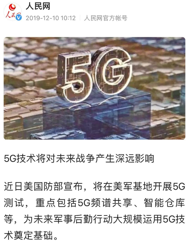 那么这是否又是在夸大其词呢?实际上,早在2019年,美国就宣布了要把5G用运用于军事。据人民网消息称,