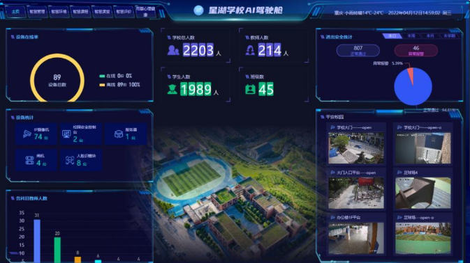 “经平安校园进出安全统计,大门入口平台可能存在异常访客,请核查。”两江新区星湖学校收到来自AI驾驶舱智慧环境平台发出的一条预警信息。学校随即启动核查,确认来访人员为校外人员。