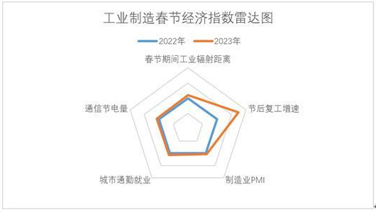 综合以上数据,工业制造春节经济指数同比去年农历同期提升20.2%。